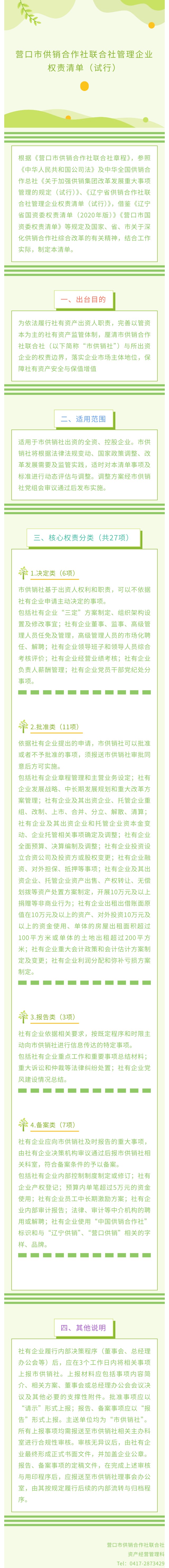 营口市供销合作社联合社管理企业权责清单(试行)【文字解读】
